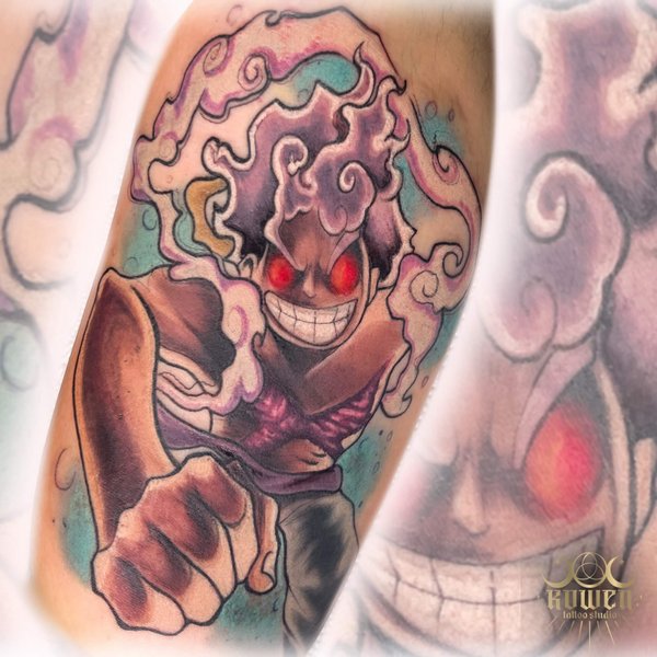 Projekt ukazuje Monkey D. Luffiego w jego najwyższej formie – Gear 5, symbolizując ostateczną wolność, odporność i nieograniczoną moc. Jego przerysowany uśmiech, świecące czerwone oczy i otaczające go chmury energii odzwierciedlają zarówno zabawowy, jak i chaotyczny charakter jego nowych umiejętności. Tatuaż ten nie tylko przedstawia siłę, ale także radość, co sprawia, że jest to idealny wybór dla osób, które utożsamiają się z niezłomnym duchem Luffiego i jego nieustannym dążeniem do spełnienia marzeń.